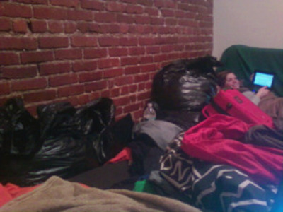 CC: Sometimes in Brooklyn all you have to do is show up. That’s what happened to me exactly one year ago on October 15th. This was Brooklyn round #2 and I was 24. (During round #1 I was 20.) My friends—two guys and one girl—moved into an apartment in Bushwick on Suydam Street and said I could come live with them. I was living in Seattle at the time. I would move to Suydam Street. Sue-Damn. The boys would share a bedroom and the girls would share a bedroom and we would save on rent that way. My friend Skye and I were high on life and in our bedroom we declared one of our shelves the positive thinking self-help bookshelf. There was a map in the bathroom and there were raccoons on the roof.