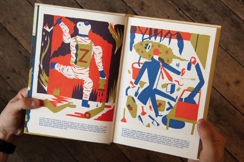 Let’s not get bogged down, then. Formally, No Man’s Land is an object which combines various genotypes, authored by a man whose career has done the same. Usually described simply as an illustrator, and probably better known for his children’s books—this year’s Ballad has just made the New York Times Best Illustrated Children’s Book Award list—Blexbolex is known for his ligne claire style, abstraction of the human figure, vibrant color, and impeccable book design and print technique. Thanks to Nobrow, we in the States are becoming more familiar with the French author’s writing for adults, which began with the graphic novel Bad boy boogie in 2000.
