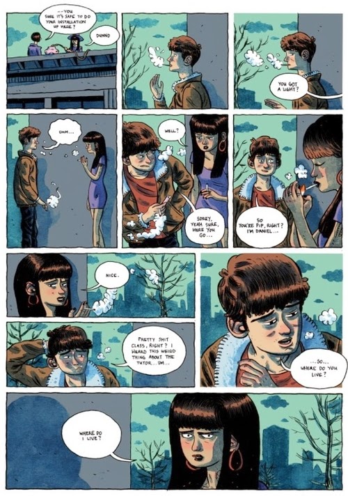 Art Schooled gives us Daniel Stope as its protagonist, a naïve small-towner who struggles transitioning into university life away from home, quickly becoming disenchanted with the pretentions of art school. As Clowes did before him, Coe makes a point of profiling the various stereotypes within Stope’s program—“the retro punk,” “the hip-hop stoner,” “the earthy-hippie,” etc. etc.—however, with Coe, these stereotypes become more bitingly detailed and, in the end, refreshingly nuanced. Having them play out over a book’s length, the bizarre characters Stope encounters are given an opportunity to expand beyond the confines of their degree, popping up in segments that occur after graduation. It’s a smart and paradoxical portrait as our classic stereotypes are both flattened and deepened simultaneously, which gives Art Schooled a lived-in quality that I’m sure many will interpret as autobiographical on Coe’s part.