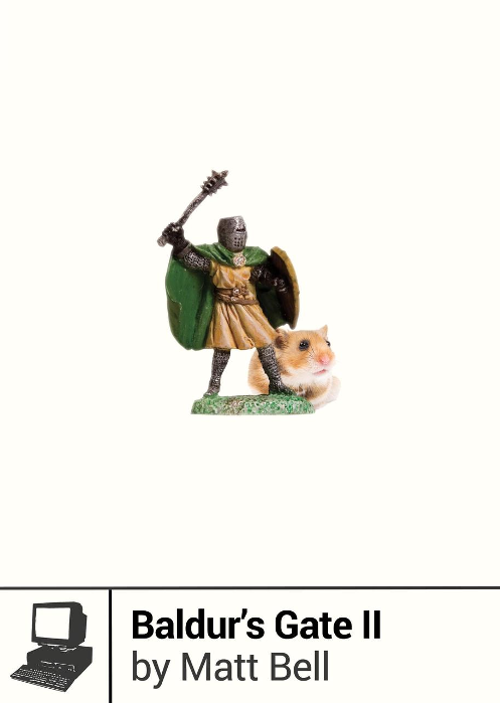 Bell does what I do with wrestling, what most nerds do with the things they hyperfocus on, and gives it a cerebral twist. This book about Baldur’s Gate II is an apt mix of recapping the game itself and dissecting it in a way that justifies an interest that has continued beyond, through puberty and adulthood and Rush albums both good and bad.