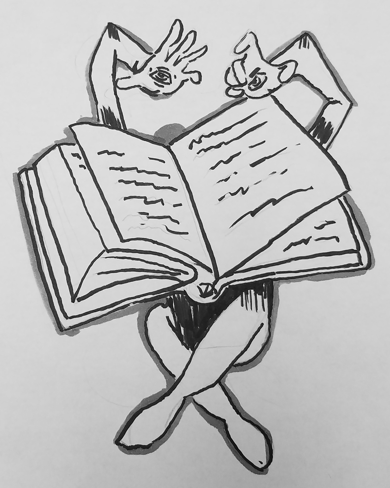 Shadow Men know the whole world is readable. That expression, an old, moldy chestnut: I can read you like a book. Well, that is how the world is for us. Every detail, movement, bumper sticker, clothing choice, facial expression, complex semiotic, is all text to us. That is how we know the future. It is like guessing the next line in a song. The future is an inevitable next piece in the sequence of world text we read. Magic is praxis.