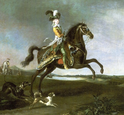 As an exercise in empathy and imagination, I like to walk through portrait galleries and try to know each oil painting. I do this alone. In the Brun de Versoix of 1783, Marie Antoinette is riding in trousers.