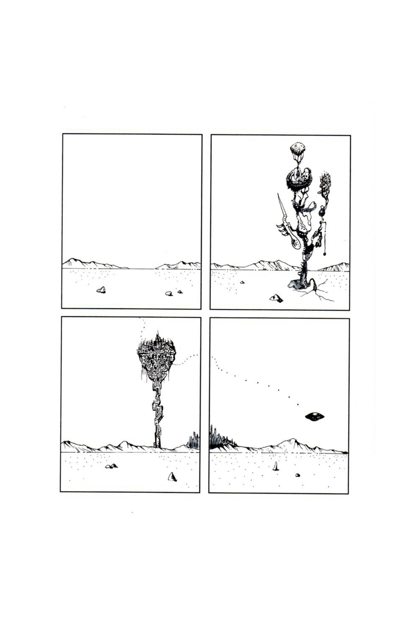 Marc S. Cohen is an artist, writer, and musician born in the United States and residing in Toronto, Canada. He makes little pen and ink drawings on existentially topical themes like alienation, dislocation and the construction of selfhood in a shifting semantic landscape. His stylistic antecedents range from classical and medieval art to the Sunday funnies.