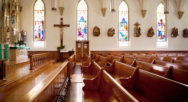 I shuffled from the bench, smoothing my red dress against my thighs, and approached the gold cross, propped in the center of the altar, its rows of white candles below. One used to pay to light a candle, but services were rare; the paper box with ten cents written across the side was gone. I assumed the priest left the matches thrown across the dirty floor. I assumed he left the doors unlocked, resulting in obscene graffiti on the walls, cigarette butts, needles, and patches of burnt carpet.
