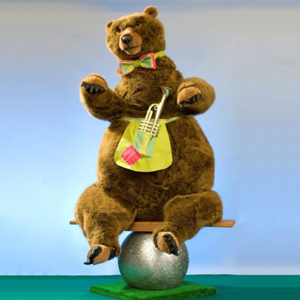 The bear looks at me like I’m stupid, then stands up tall on his haunches with something behind his back, smiling.