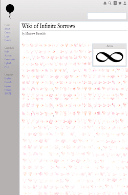 KERNPUNKT Press describes Wiki of Infinite Sorrows as a “sandbox novel,” a term borrowed from gaming where the player interacts with a highly detailed and sophisticated universe but without a game’s typical obligation to pursue some quest or goal. As with such games, Burnside offers us a choice—we can meander through the entries, taking each on its own merits and these stories all stand up on their own, or we can build our own quest for answers to the weighty questions of loss, loneliness, and happiness that beset Burnside’s characters.