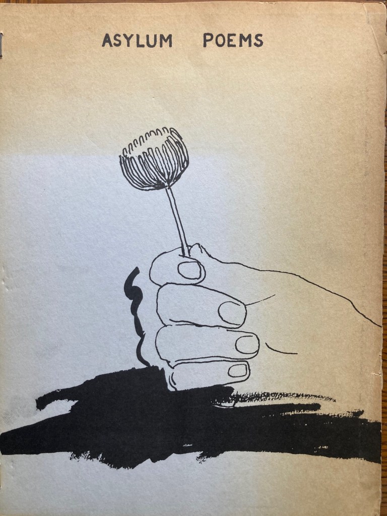 This “art object” was not a “book” at all and yet it contained writing. This interesting object led me back then to think of what constituted a book? Can a book, like Coolidge himself once said about a poem, be like a rock, in that it interrupts the flow of mainstream information? I think it originally sold for around $150; I can’t imagine what it’s going for now, if it’s even available. This kind of object demands to be looked at in a different way, not simply read, but “seen.” There is also considerable wit. On the other hand, there are also publications where the pages are Xeroxed and stapled together, and that over time become brittle while the pages turn yellow. The ephemeral nature of handmade things in the word becomes apparent when we think of books. I am here thinking of the Angel Hair publication of John Wieners’ Asylum Poems. I value it for the modesty of the publication, the simple and wonderful drawing on the thick cover by George Schneeman. But holding it in my hands I need to be careful since the pages are fragile due to age. Betty Bright, in her book No Longer Innocent: Book Art in America 1960-1980 (Granary, 2005), writes about Wallace Berman’s important publication Semina, that it “resulted from limitations in time, money, and materials, but it also represented an ephemeral aesthetic that eschewed the slick finish of mainstream art and publishing.”