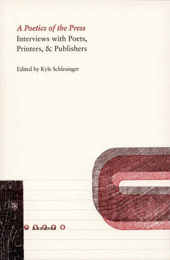 A Poetics of the Press: Interviews with Poets, Printers, & Publishers, edited by Kyle Schlesinger. Brooklyn, New York: Ugly Duckling Presse, May 2021. 384 pages. $24.00, paper.