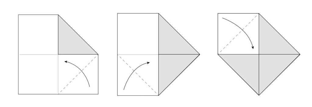 Step 3. Fold the corner of the paper to the center. You’ll do this on each of the 4 corners.[3]