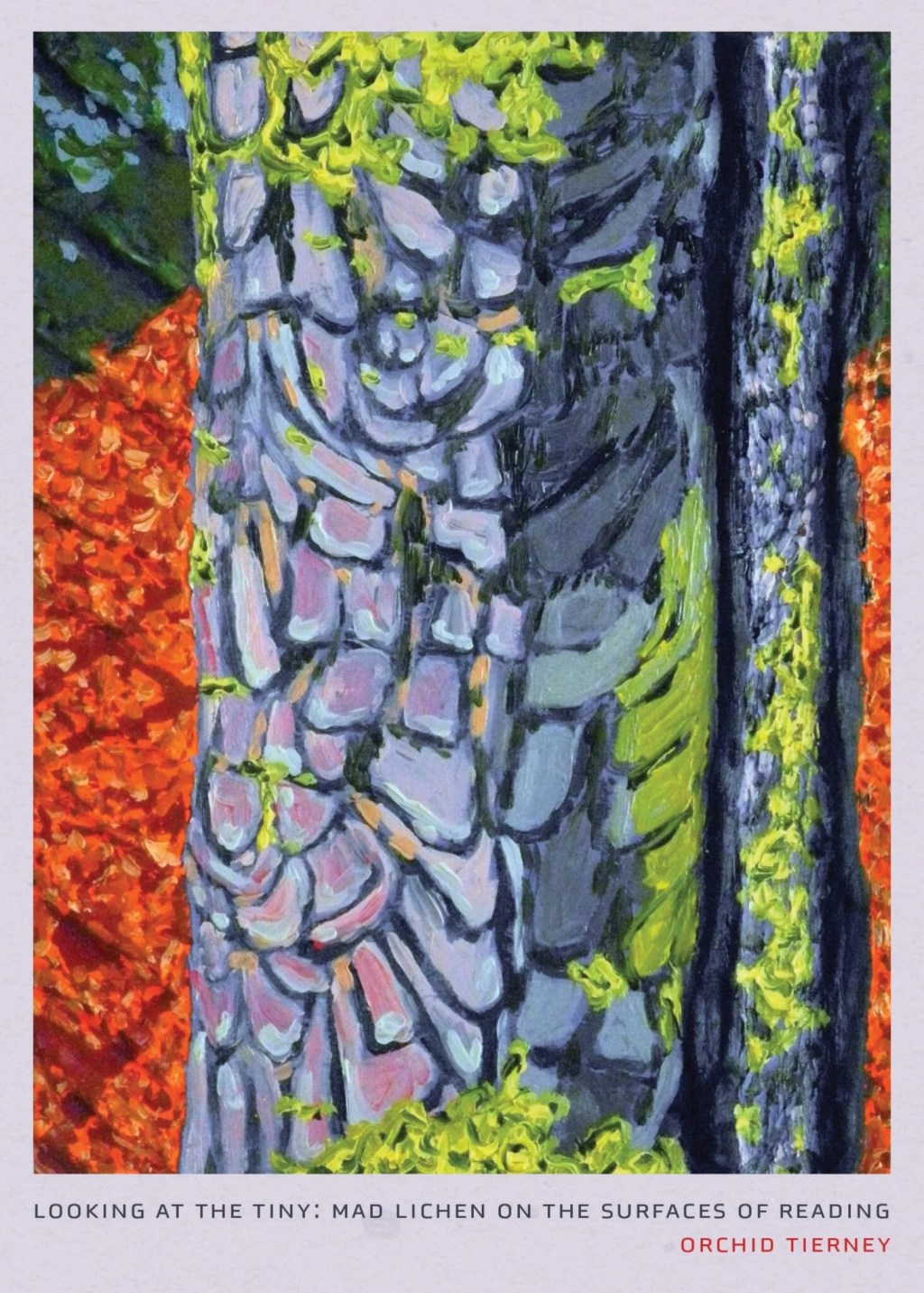 looking at the Tiny: Mad lichen on the surfaces of reading, by Orchid Tierney. Buffalo, New York: Essay Press, 2023. 27 pages. $12.00, chapbook.