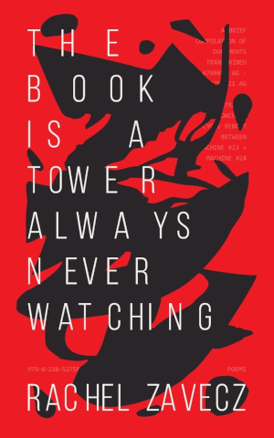 Panoptic, monstrous, and uncontrolled, this debut book is a tower is the shimmering black ooze of you (dot) reader smeared digital with interlocking language roaming—centipede-like—under a glossy tower of flattened red. With copyright page by glitching gyre, with possible future links to a silent chorus. A compilation of documents, an assemblage of meat. An introduction to poet Rachel Zavecz poet who always-never watches poet as tower and book as tower and tower as moth and moth as what hovers invisible over every numberless page of this book. Tower. Less. A page less number. Less a book than being in the wrong part of the animal, something lost inside the tower cries. This book is a tower crying a pearlescent glimmer of insect wings, a “mult.iplic.ation of num.bers”—always-never watching you, obedient reader. Pearl after pearl. A multiplication of moths. Don’t be fooled by the eyespots, obedient reader. Don’t be fooled by those kitten eyes. By those corneas of a “physician’s tender.” By the time you reach the book’s un-ending and its mysterious appendices, you’ll want to initiate a cycle reboot! This is a spectacular book of endless becomings! For fans of Hideaki Anno’s Neon Genesis Evangelion, Fritz Lang’s Metropolis, and E. Elias Merhige’s Begotten.